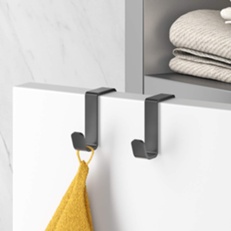 Den här handdukskroken fungerar lika bra i köket för grytlappar och kökshanddukar som i badrummet för handdukar. Du väljer själv om du vill hänga kroken på utsidan där den syns, eller på insidan av dörren för en mer diskret förvaring. Eftersom den inte behöver skruvas fast kan du enkelt flytta den när behoven ändras.