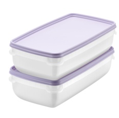 Dessa rymliga frysburkar på 1,2 liter gör det enkelt att hålla ordning i frysen. Den avlånga formen utnyttjar utrymmet effektivt, och burkarna staplas stabilt på varandra oavsett om locket sitter på eller inte.