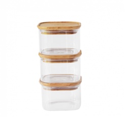 Tre eleganta glasburkar som håller ordning på dina torrvaror samtidigt som de pryder köket. Det transparenta borosilikatglaset låter dig se innehållet direkt, och de tätslutande bambulocket håller allt fräscht.
