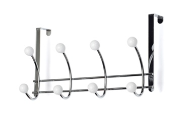 Bonny hängs enkelt över dörrens överkant och passar dörrar upp till 40 mm tjocklek. De fyra dubbla krokarna ger dig totalt åtta upphängningspunkter på två nivåer, så du kan hänga mer på mindre yta. Den förkromade metallen med vita knoppar gör att hängaren ser stilren ut även när den syns.