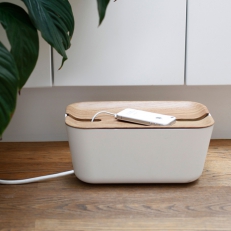Kabelgömman är även ett praktiskt ställe att samla hela familjens laddare på. Lägg mobiler, kameror och andra enheter på laddning uppe på det naturfärgade locket och göm undan laddsladdarna i lådan.