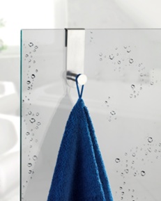 Kroken är konstruerad för glasväggar som är 6 eller 10 mm tjocka, vilket täcker de vanligaste måtten på duschväggar. Gummibeklädda kanter på insidan skyddar glaset från repor och ser till att kroken sitter stabilt utan att glida.