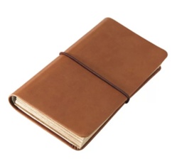 Den här praktiska boken fungerar lika bra som visitkortshållare som kvittobok. Omslaget i varm brun läderimitation ger ett klassiskt intryck, och det elastiska gummibandet håller boken säkert stängd i väskan eller fickan. Med måtten 18 x 8,5 cm är den lagom stor för att rymma det du behöver utan att ta för mycket plats.