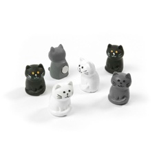 Magneterna kommer i en dekorativ förpackning som gör dem perfekta att ge bort. Med två vita, två svarta och två gråa katter får man en fin mix som passar på de flesta kylskåp. Detaljerna är omsorgsfullt målade, från små morrhår till glittrande ögon.
