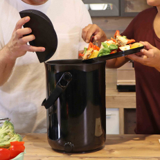 Innerlocket är enkelt att ta bort när du ska fylla på med nya matrester och allteftersom du fyller på hinken med nya matrester använder du locket för att trycka ihop innehållet på nytt. Använd den lilla kranen på framsidan för att tömma hinken på lakvattnet som samlas i botten av hinken. Hur ofta du behöver tömma beror på vilken typ av matrester du lägger i hinken, grönsaker och frukter genererar till exempel mer vätska än köttrester.