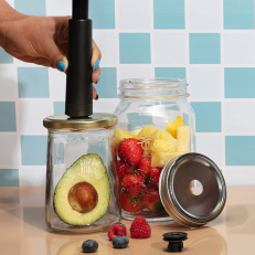 Genom att skapa ett vakuum i burkar och flaskor minskar syreexponeringen, vilket förhindrar att maten blir dålig och att vinet oxiderar. Detta gör att livsmedel och drycker håller sig färska längre, utan att behöva tillsätta konserveringsmedel.Perfekt för marinering och infusion